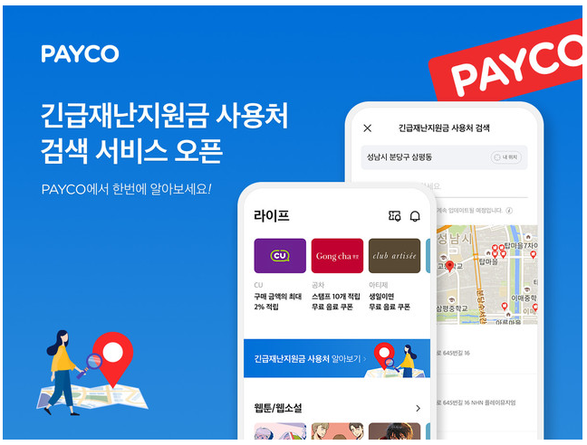 간편결제서비스인 ‘페이코’가 어플리케이션(앱)을 통해 긴급재난지원금 사용처 검색 서비스를 제공한다고 밝혔다.