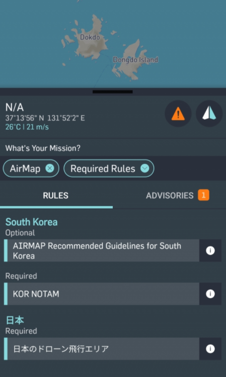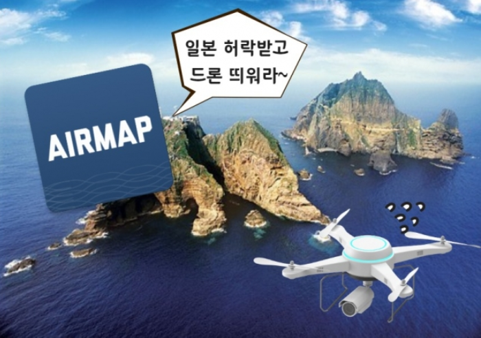 세계 최대 드론 소프트웨어 업체 미국의 'AirMap for Drones' 가 자사의 플랫폼에 "독도에서 드론을 띄우려면 일본 정부의 승인을 받아야 한다" 고 안내하여 논란이 불거졌습니다.