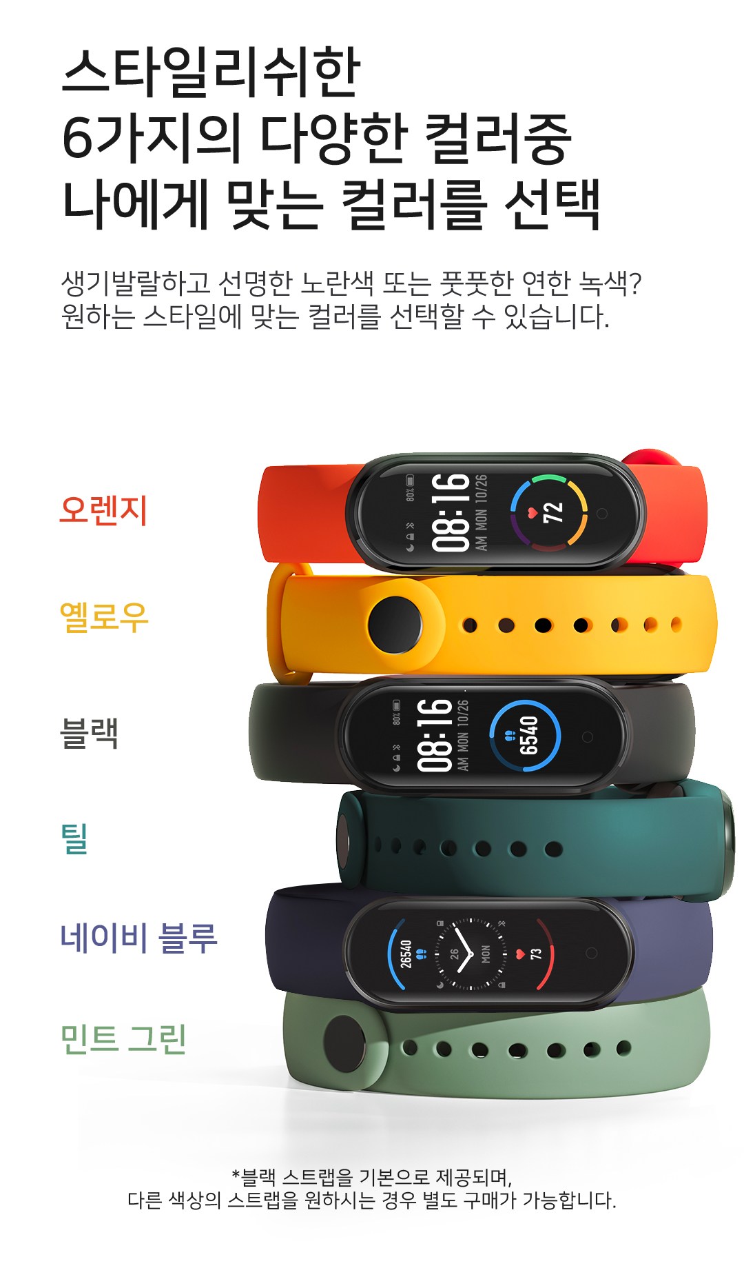위에 링크를 클릭하셔서 들어가시면 바로 미밴드5 한글버전을 구매하실 수 있으며, 색상은 검은색으로 기본 지정되어 있고 다른 색을 구매하시려면 별도의 스트랩을 구매하셔야 합니다.