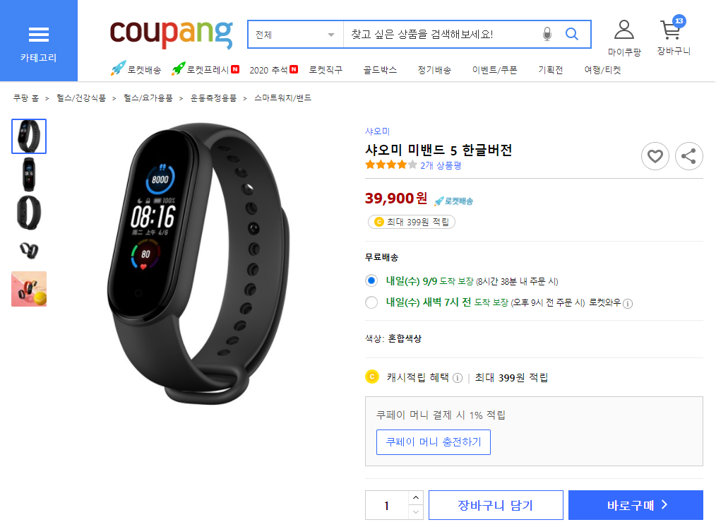 미밴드5 국내판 정품은 쿠팡에서 구매 가능하며 아래 링크를 통해 들어가시면 구매가 가능합니다.
