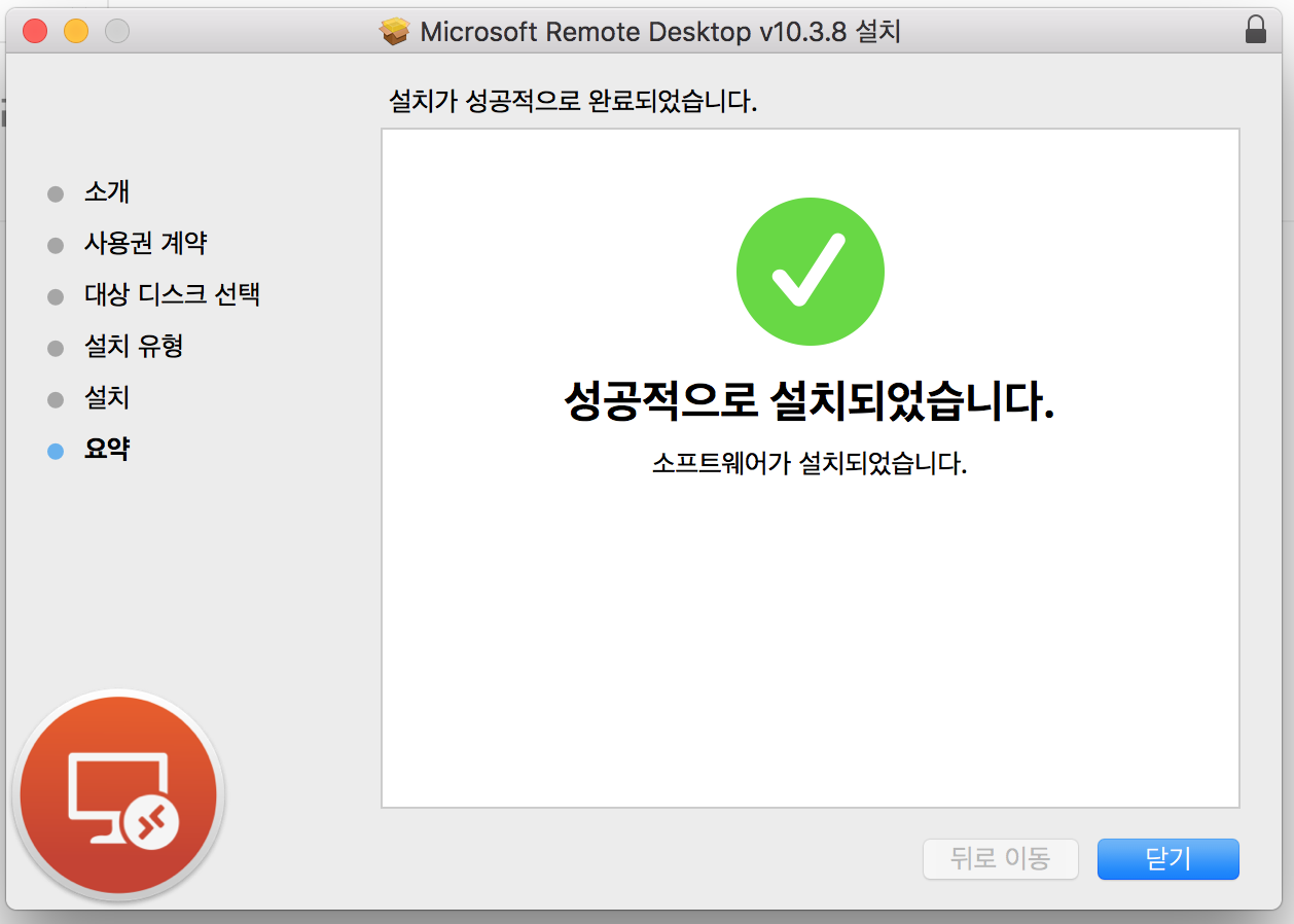 PKG 파일을 설치해서 다음과 같이 설치가 성공적으로 완료가 되었습니다.