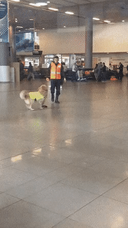 출근할 생각에 신나서 공항을 뛰어다니는 리트리버인데요.
