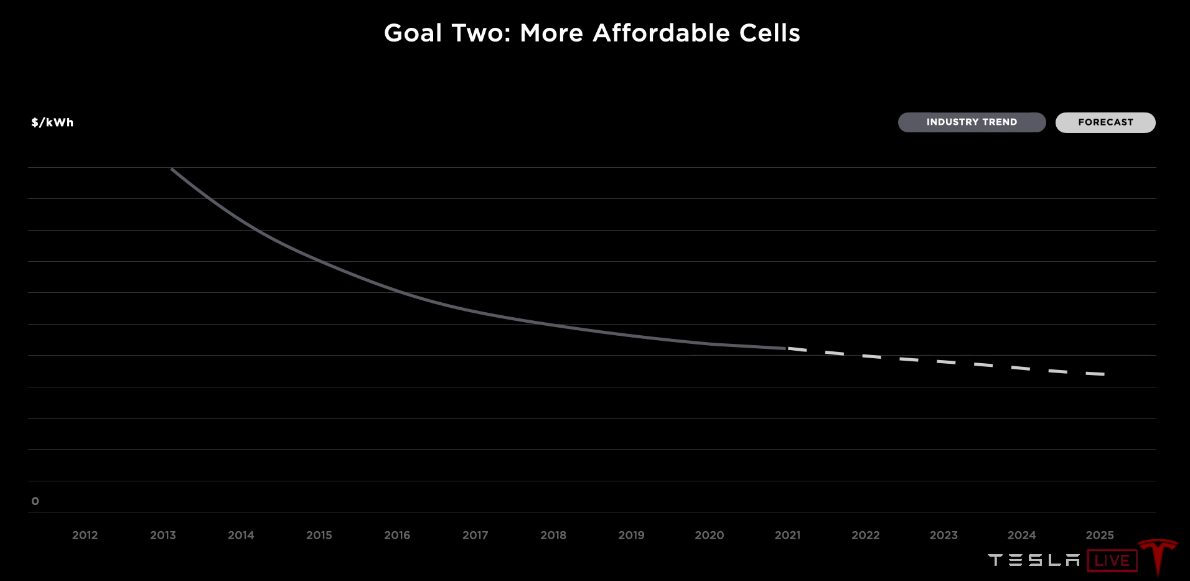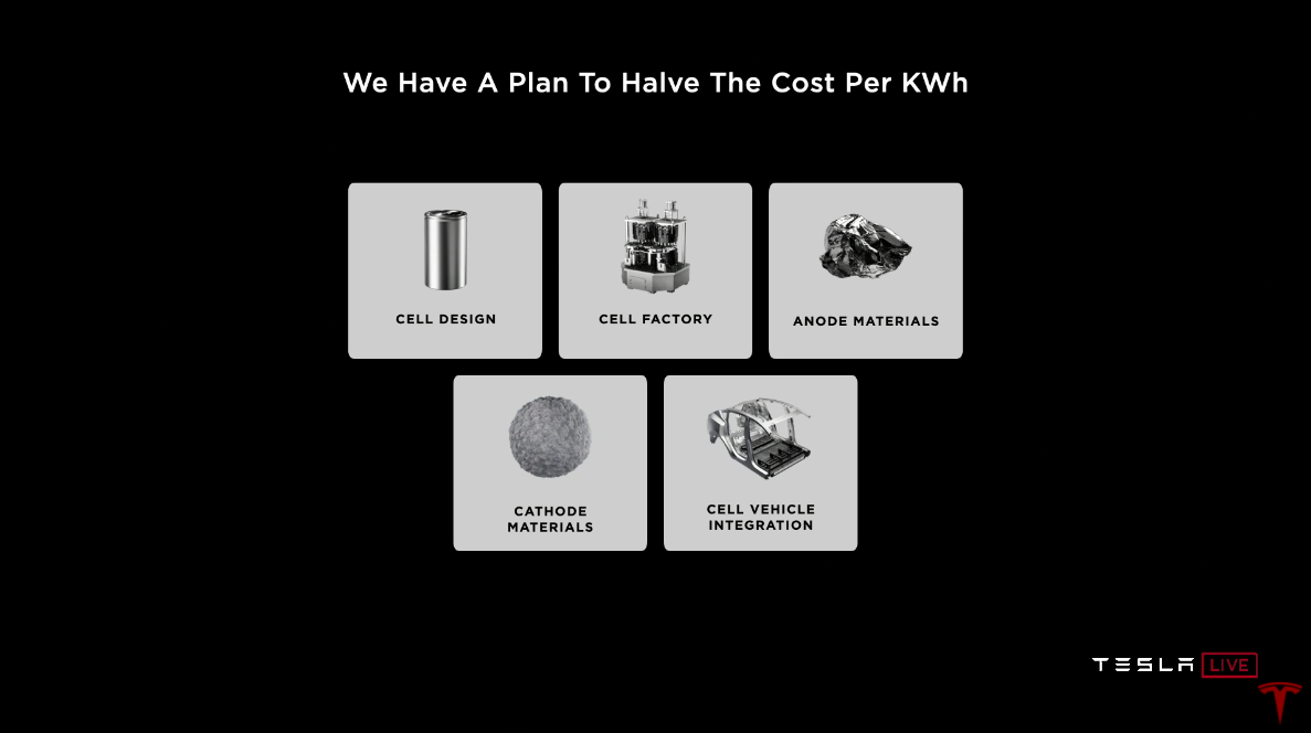 머스크 CEO는 22일(현지시간) 미국 실리콘밸리 프리몬트 공장 주차장에서 연례 주주총회 겸 배터리데이 행사를 열고 이같이 발표했습니다. 그는 “배터리 가격을 킬로와트시(KWh)당 기존 대비 절반 수준으로 줄일 것”이라며 “배터리 디자인과 소재, 생산망 등에서 혁신을 이뤄 가격을 절감하겠다”고 말했는데요.