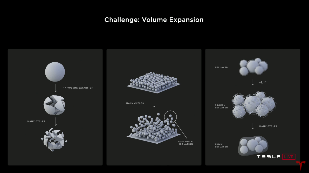 실리콘 음극재 통해 에너지 밀도 개선하였고, 부피 팽창 문제 상당 부분 해결되었다고 말했습니다.