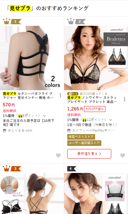 실제로 일본에서 '보여주기용 브라'를 검색하면 이를 겨냥한 상품들이 검색되기도 하였습니다.