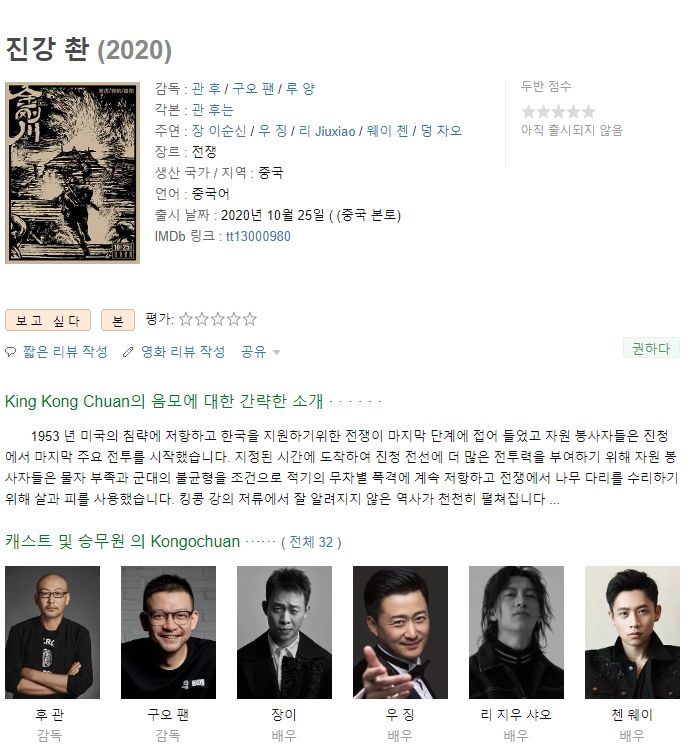 10월 25일 개봉을 앞두고 있는 진강촨 (금강천)