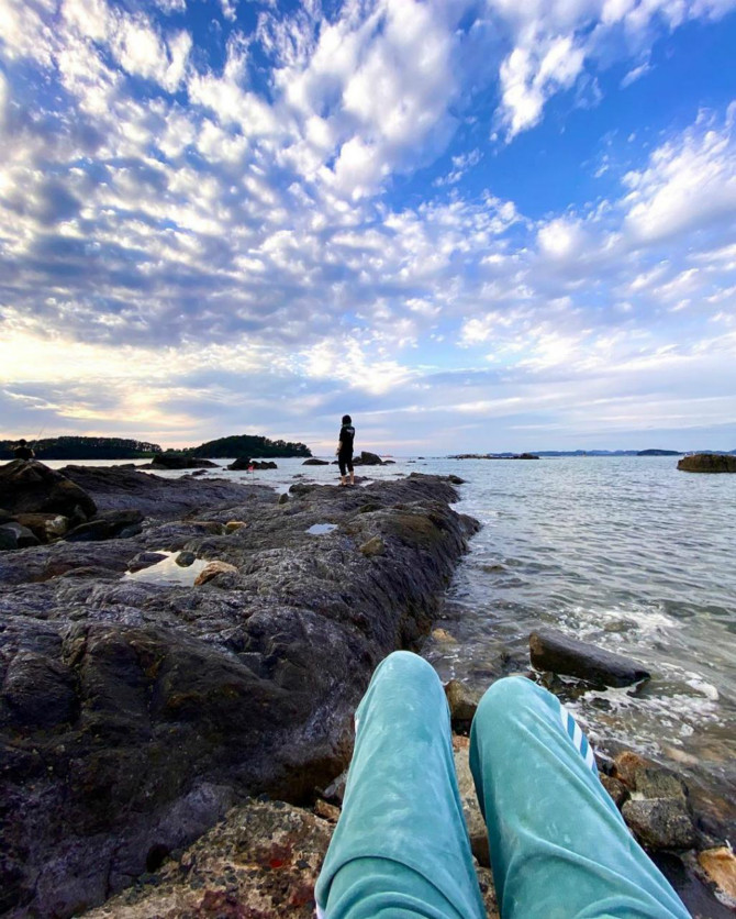 특히 넓은 배경은 노을진 풍경과 바닷가가 잘 어울러 마치 화보의 한 장면 같았습니다.