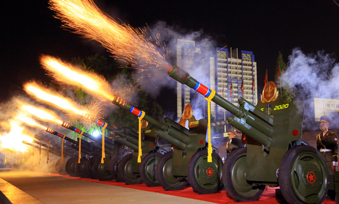 김일성 광장이 대낮처럼 환히 빛나는 가운데, 백승 등 대형 글자를 만들어내는 군악대의 움직임이 일사불란하게 움직이고, 불꽃놀이와 LED로 밝힌 대형 풍선 등 빛을 활용한 화려한 볼거리에 감격한 듯 눈물짓는 참석자도 있었지만 마스크를 쓰지는 않았습니다.