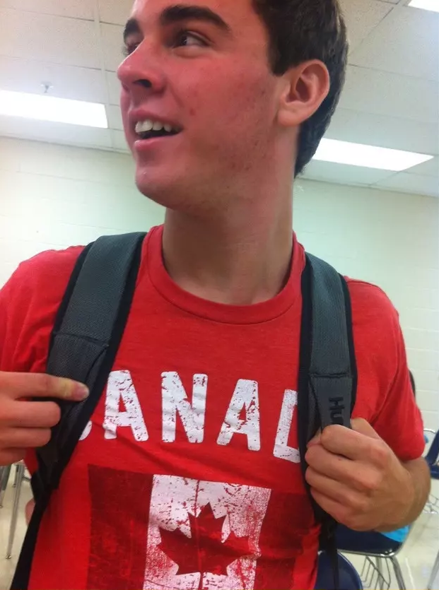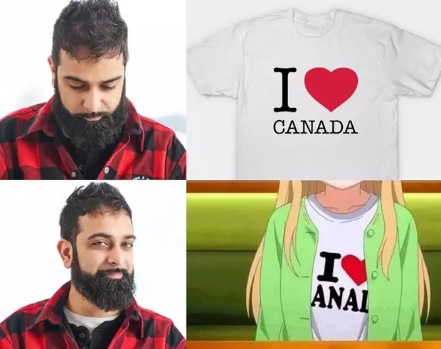 'CANADA' 글자가 프린팅 된 티셔츠를 입은 사람들의 모습에는 가방으로 글씨가 가려져 'ANAL' 이라는 단어만 보여 웃음을 유발한 것입니다.