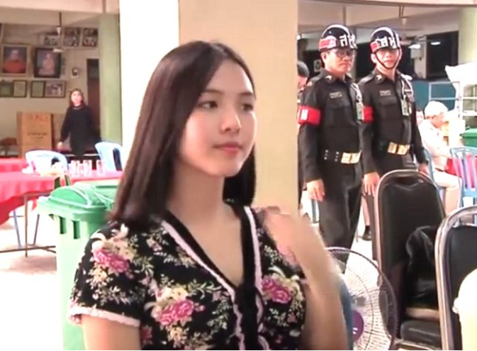 화사한 꽃 무늬 원피를 입은 영상의 주인공은 1996년생 몬타나 진 추다투스(Monthana Jeen Chuthatus)로 태국 사오 (Chachoengsao) 주에서 열린 남성 의무 징병 검사(Mandatory-for-men military draft in Thailand)에 출연 한 뒤 현지 언론에 헤드 라인을 장식하며 전 세계 화제가 되었습니다.