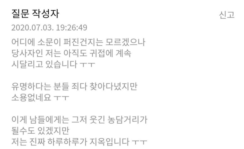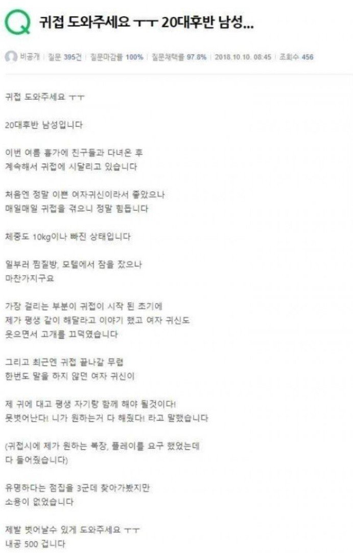 또 한 네티즌은 네이버에 귀접에 고통스러워 하여 고민을 상담하기도 했는데요. 비공개로 올라온 네티즌은 "귀접 도와주세요 ㅜㅜ 20대후반 남성" 이라는 제목으로 올라와 화제가 되기도 했습니다.