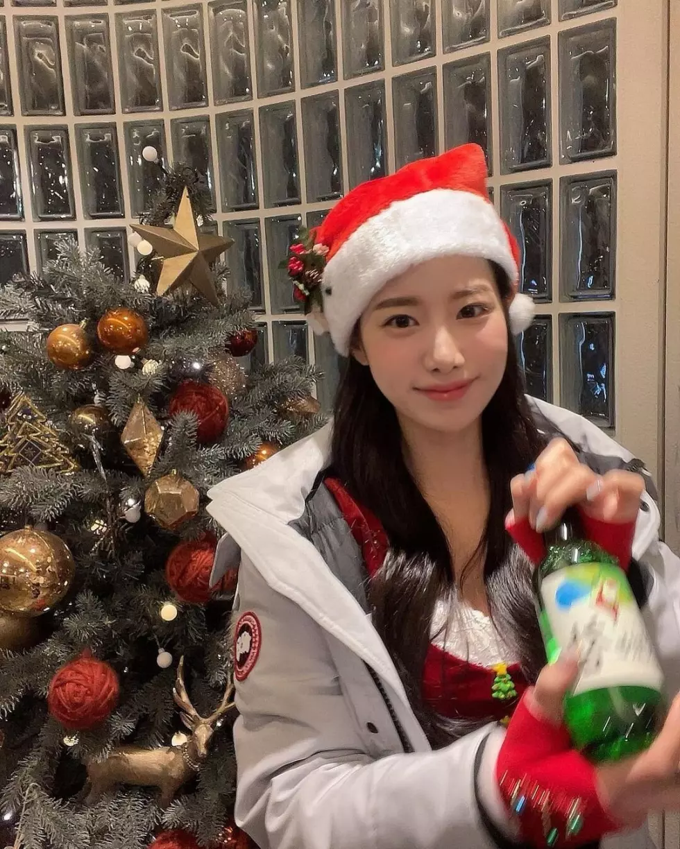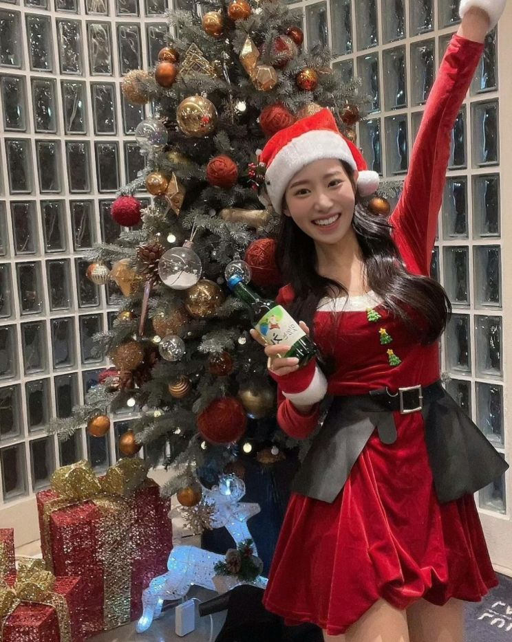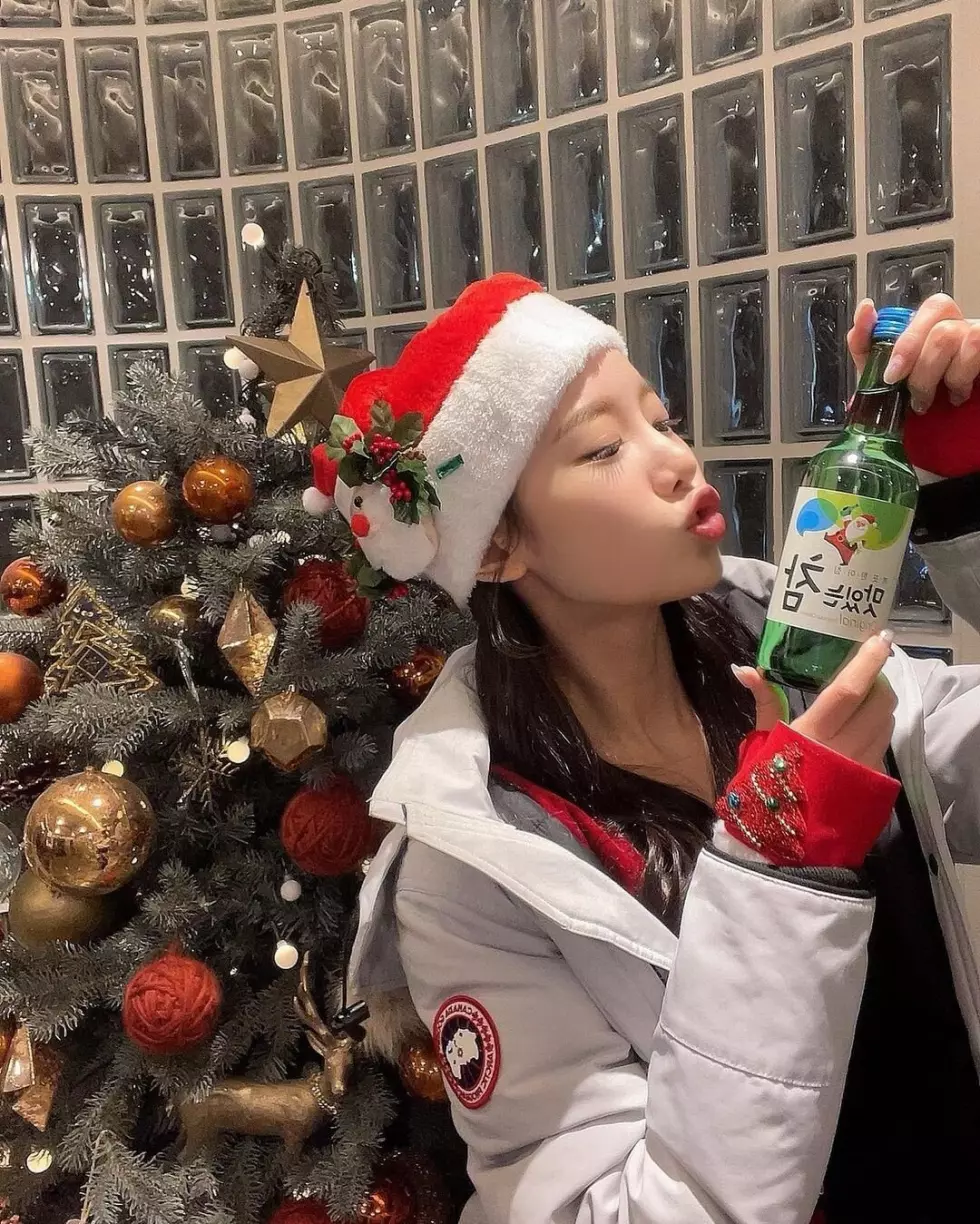 청순하면서도 섹시한 산타걸이 아닐 수 없는데요. 이날 소주 '맛있는 참' 과 함께 크리스마스 트리 앞에서 산타복장을 하고 찍은 사진은 팬들의 관심을 받았습니다.
