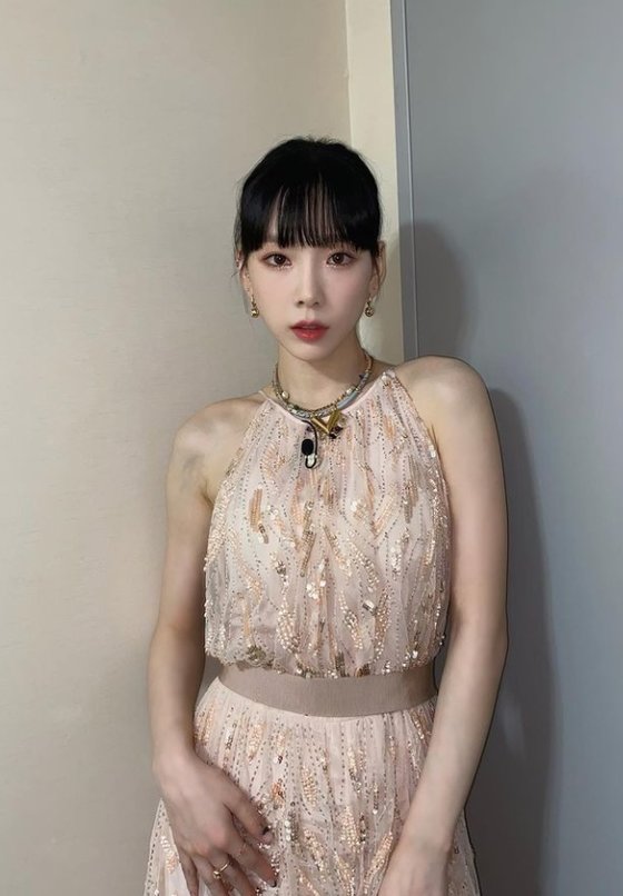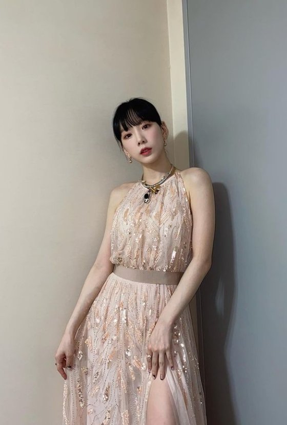 공개된 사진 속 태연은 금빛 스팽글 장식이 된 오프숄더 드레스를 착용한 모습. 은은한 눈빛으로 신비로운 분위기를 자아내고 있었습니다. 가녀린 몸매와 인형 같은 비주얼이 눈길을 끌었는데요.