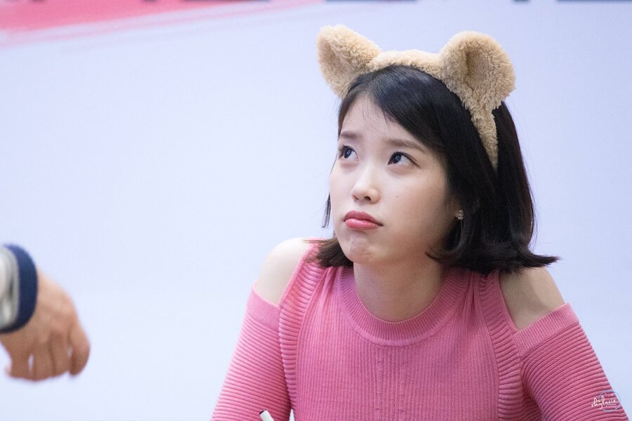 “I'm pretty sure the fan showed iu his tattoos on his arms which have iu lyrics/song titles. her face when she saw them LOL https://t.co/O3d2kb2bec”