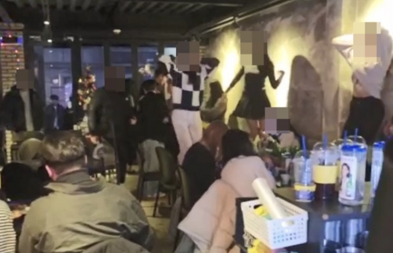 27일 SNS에 올라온 영상이 올라와 인터넷 커뮤니티에 공유된 것인데요. 지난 23일 밤 경북 안동시 옥동 한 주점에서 손님 대부분이 마스크를 착용하지 않은 채 붙어 앉아 대화하며 술을 마시고 있었고, 음악 소리로 시끄러운 주점 안에서 일부 손님은 탁자 위에 올라가 춤을 추고 있었습니다.