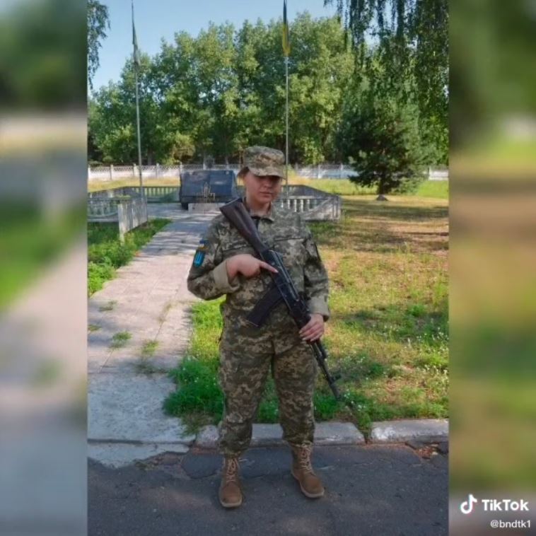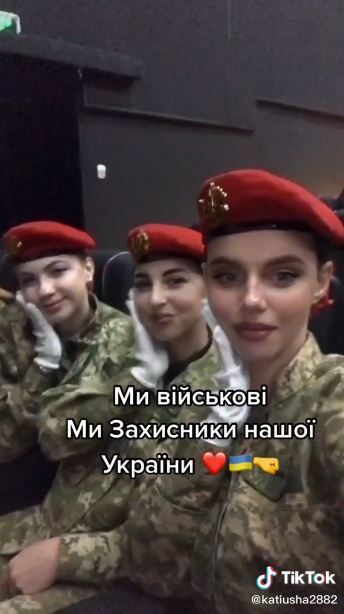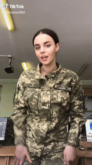 한 우크라이나 여성 틱톡 영상에서는 우크라이나 국기와 군대 휘장이 새겨진 군복을 입고 노래를 따라 하는 한 무리의 젊은 여성도 있었습니다. 이 젊은 여성의 군인은 자신과 동료 병사들이 포즈를 취하고 군사 훈련을 수행하는 일련의 사진과 짧은 비디오를 공유하고 있습니다. 이 계정은 약 35,000명의 팔로워와 거의 600,000명의 좋아요를 받아 화제가 되었습니다.