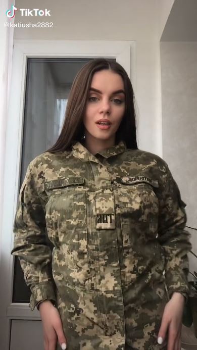 그녀는 우크라이나 군복을 입고 노래하고 춤추는 자신의 여러 비디오를 공유하고 있습니다.