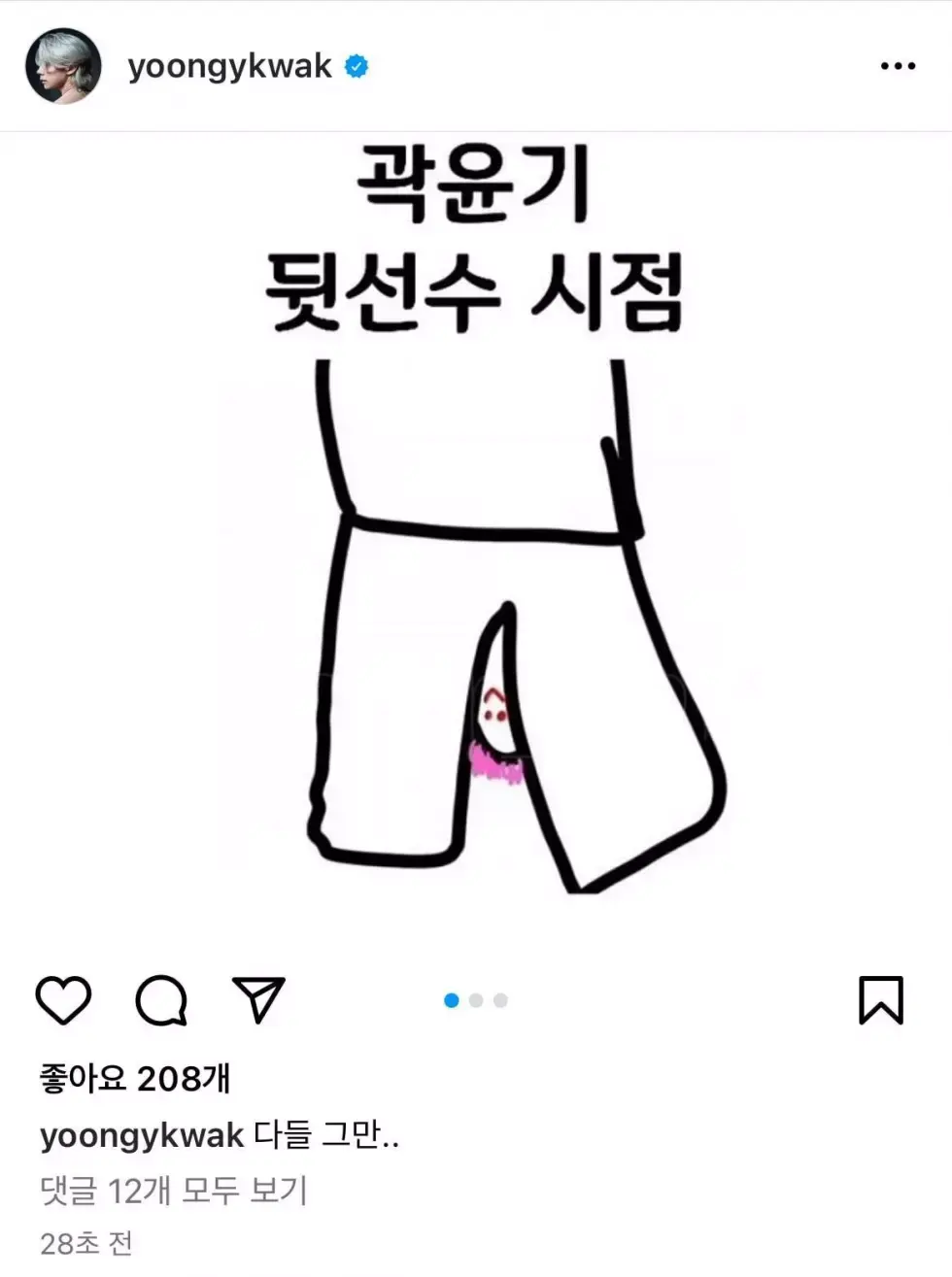 쇼트트랙 선수 곽윤기는 12일 오전 인스타그램에 "다들 그만…"이라는 글과 함께 사진과 영상을 올렸습니다.