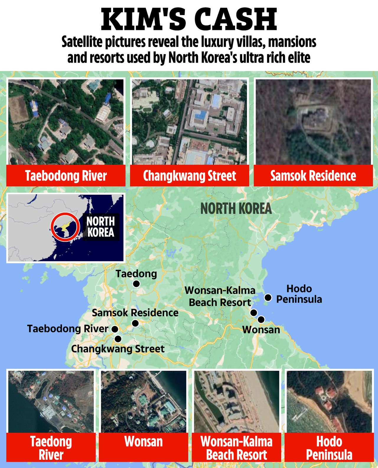 김정은의 새 별장은 원산에서 영흥만 맞은편에 있으며, 그곳에는 북한 엘리트들의 집이 있는 기존 별장과 큰 집들이 모여 있습니다.