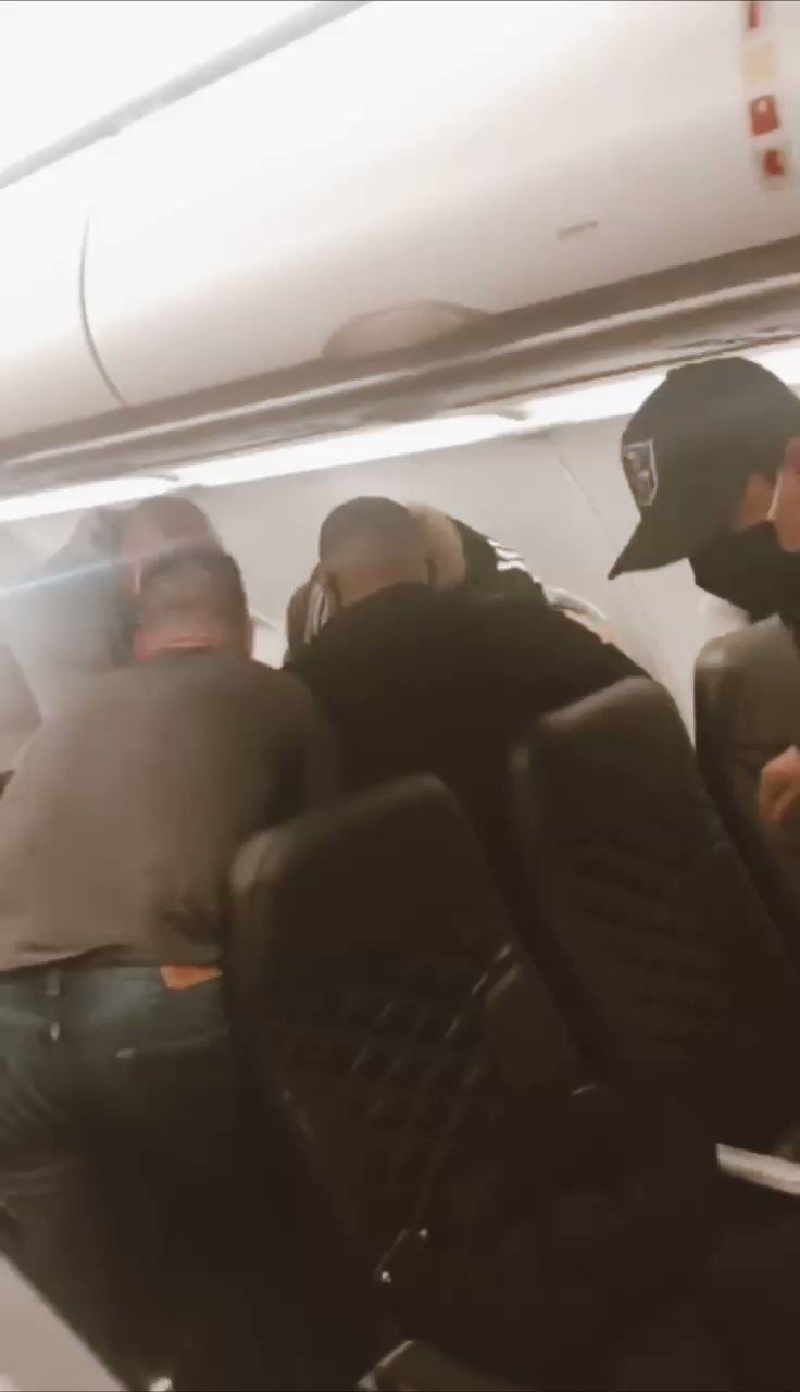 “BREAKING: Frontier Airlines Flight 1335 from LGA to MCO was diverted to RDU due to an unruly passenger threatening to hurt passengers on the plane. A citizens arrest was conducted and the following video was provided by eyewitnesses: #AviationDaily http