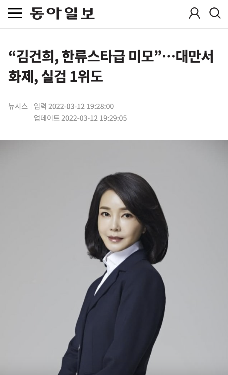 대만에서 한국의 대통령 선거가 화두로 떠오르고 있다는데요. 그 이유는 다름 아닌 윤석열 대통령 아내 김건희씨가 포털사이트 인기검색어에 오르며 주목 받고 있기 때문이랍니다.