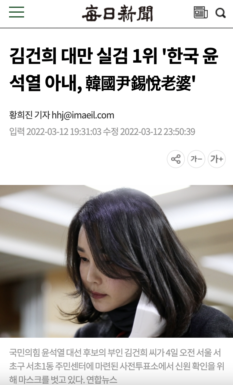 제20대 대통령 선거를 하루 앞둔 지난 8일(현지시각) 오후 야후 대만 인기검색어엔 ‘한국 윤석열 부인’이란 키워드가 1위에 오르기도 했고, 해당 키워드를 검색하면 윤 당선인의 아내 김건희씨를 조명한 기사가 다수 나온다며 국내 언론사에서 앞다투어 기사를 내보냈습니다.