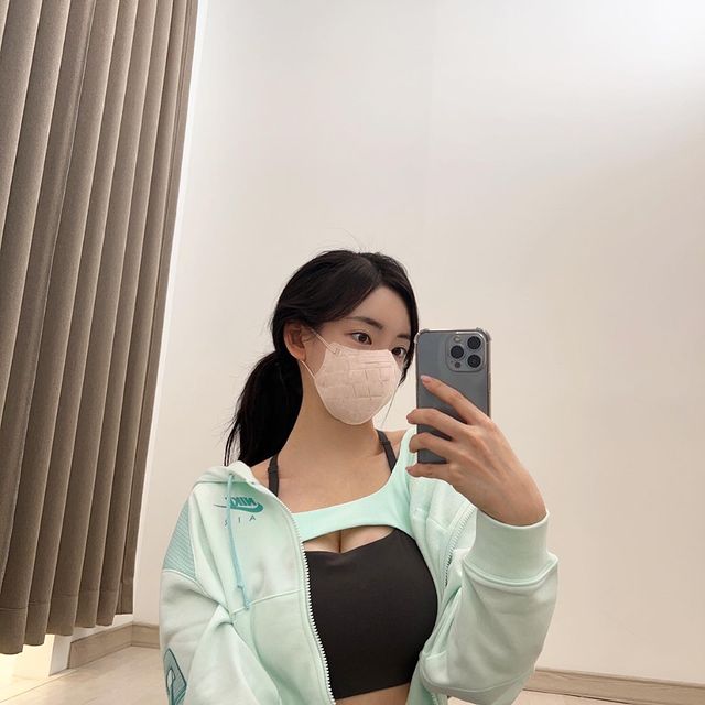 공개한 사진에는 곽민선이 아침 운동 인증샷을 위해 거울 셀카를 촬영하고 있는 모습이 올라왔습니다.
