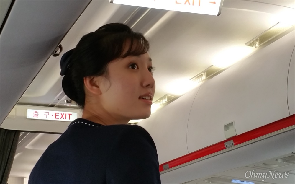 고려항공 승무원들이 지난 20일 평양 순안공항에서 삼지연으로 가는 길에 남측 수행원들을 안내하고 있을 때 입니다.