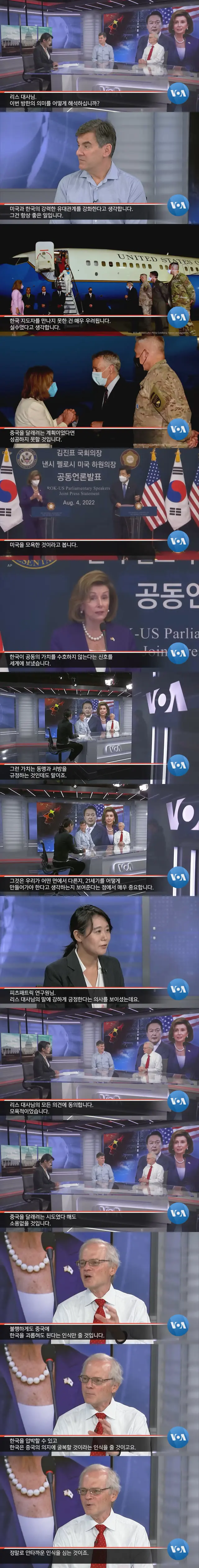 리스 전 실장은 이어 “(펠로시 의장이) 한국 지도자(윤 대통령)를 만나지 못한 건 매우 우려된다. 실수였다고 생각된다”며 “(한국 측이) 중국을 달래려는 계획이었다면 성공하지 못할 것이다. 미국을 모욕한 것이라고 본다”고 했습니다.