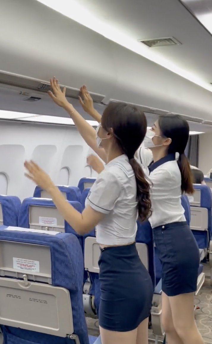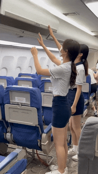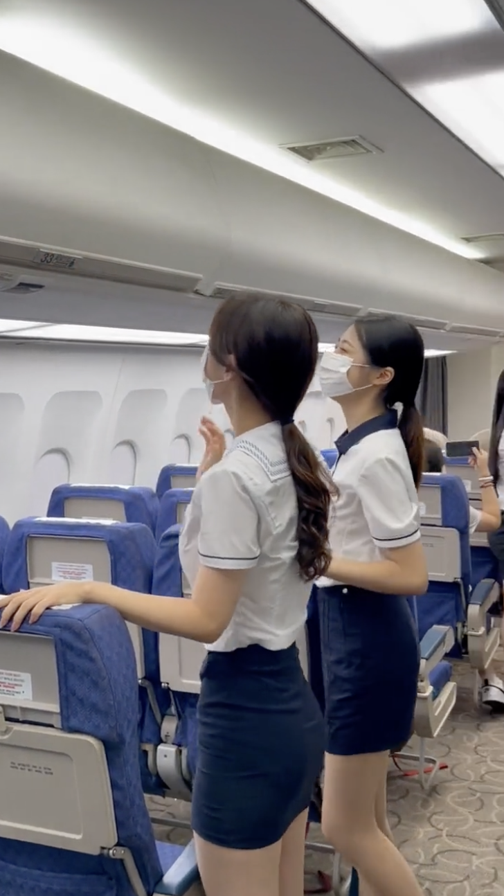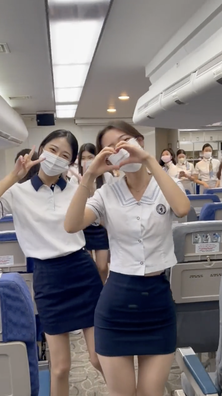 영상에서 여학생들은 항공 승무원 스튜디어스 일일체험을 한 것으로 보입니다.