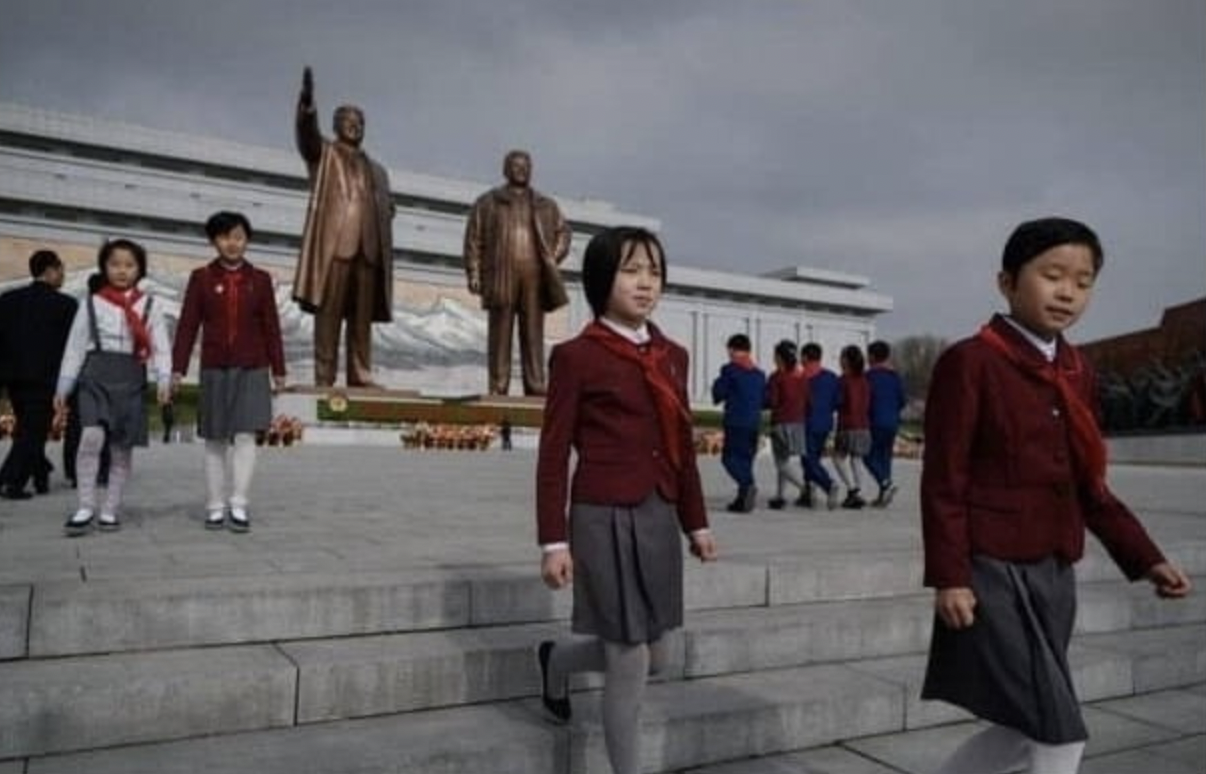 학생과 선생님 사진인데요. 평양의 학생들은 잘 먹고 잘 살겠죠?