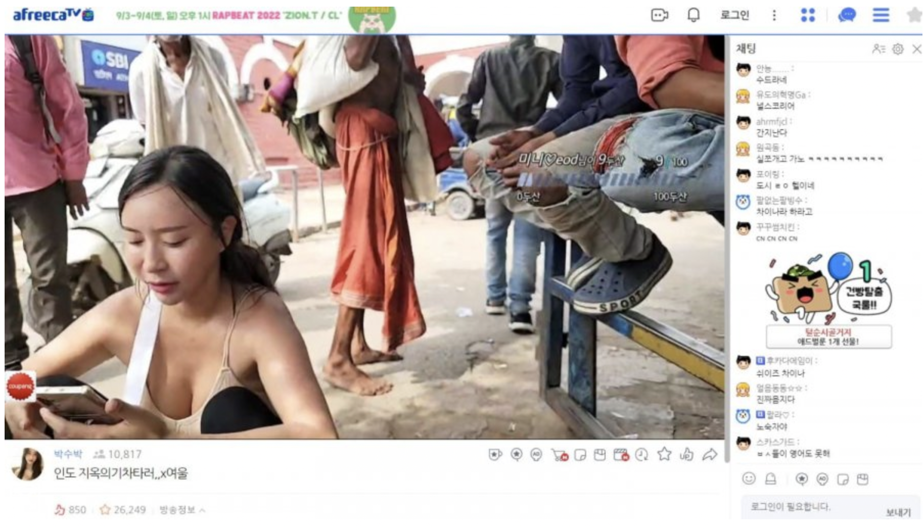 현재 인도 여행을 하며 아프리카tv에서 스트리밍 방송을 하고 있는 여성 BJ '박수박(jjilyy)' 가 인터넷 커뮤니티에서 화제가 되고 있습니다.