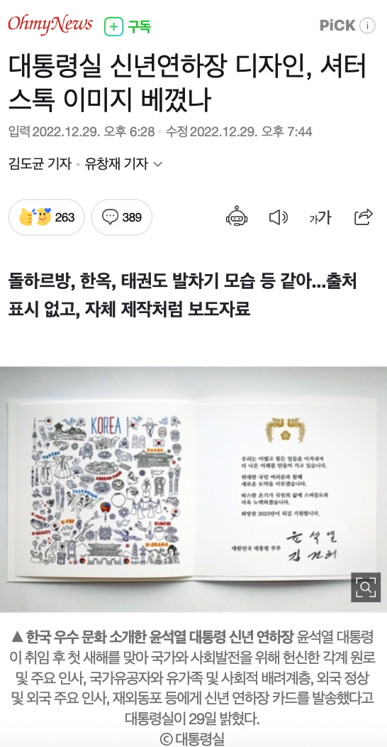 보도 직후 대통령실은 "연하장 디자인 도용 의혹 제기는 전혀 사실이 아니다"란 입장을 밝혔다.