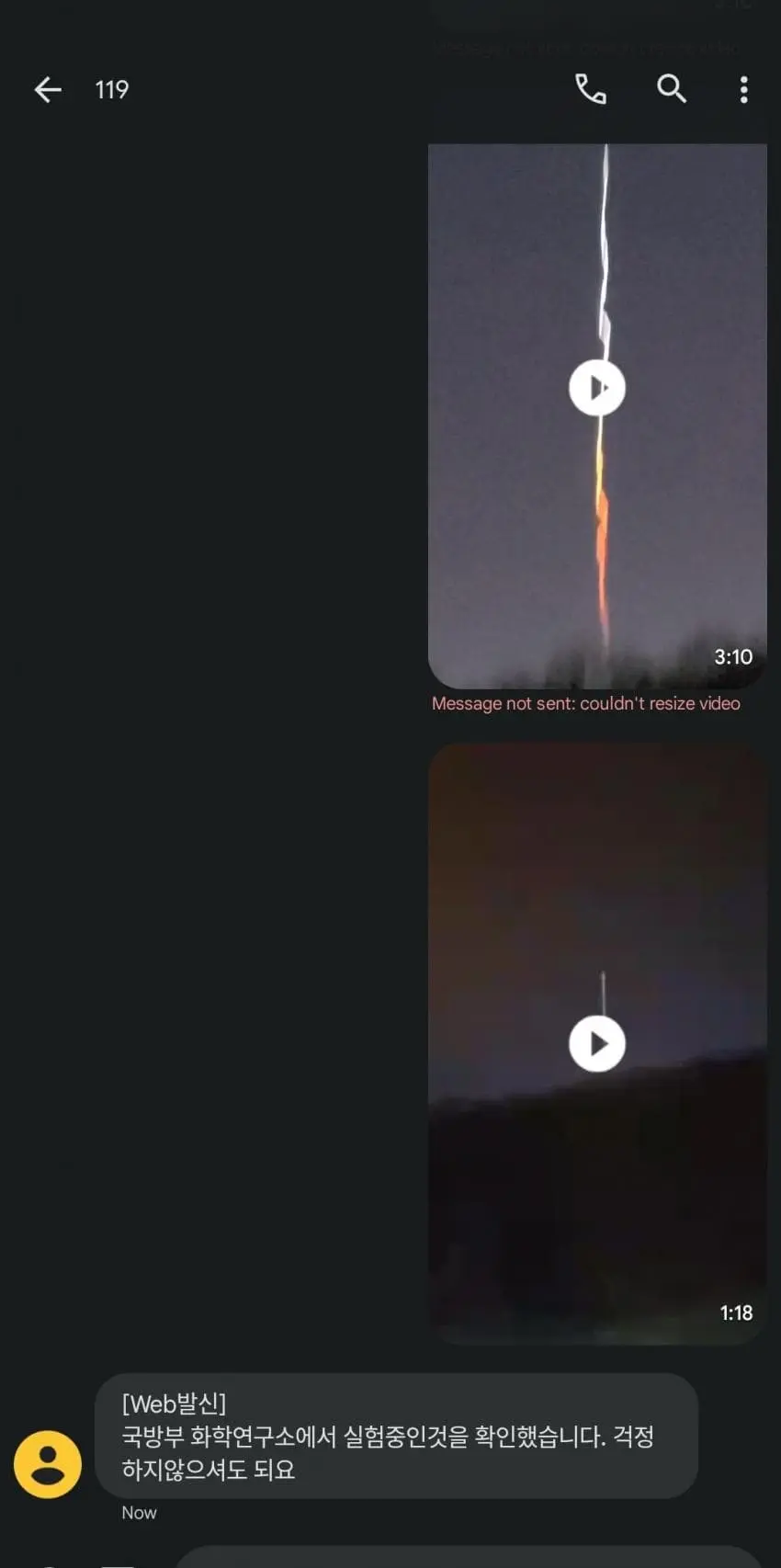 누군가 119에 문의를 하였고, 119에서는 국방부 화학연구소 실험 중으로 확인되었으니 걱정하지 않으셔도 된다는 답변을 해왔다.
