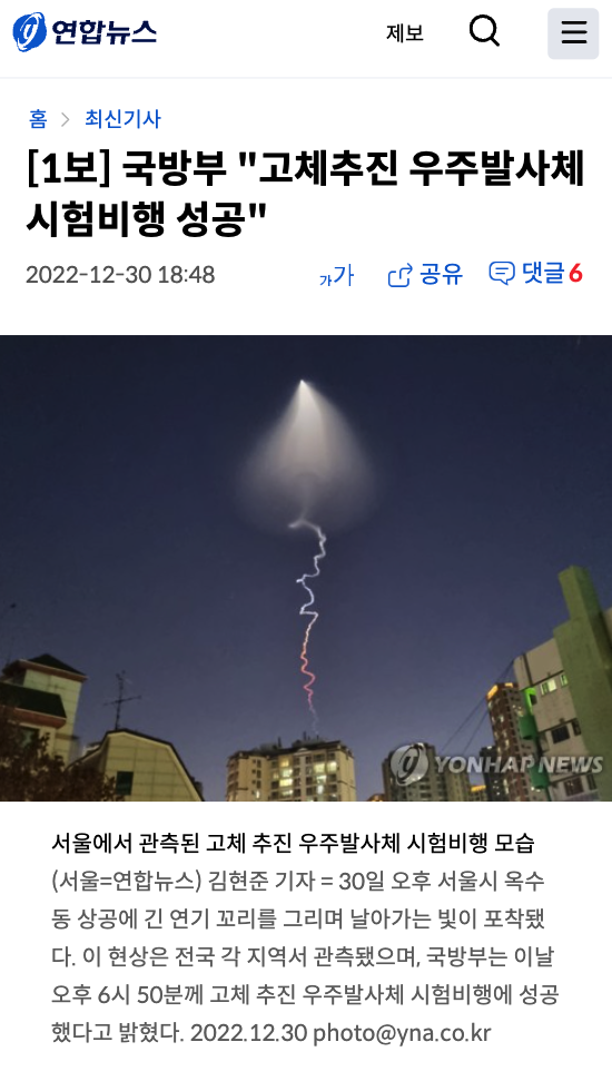 | 고체추진 우주발사체 시험비행 '성공' (0) | 2022.12.30 |